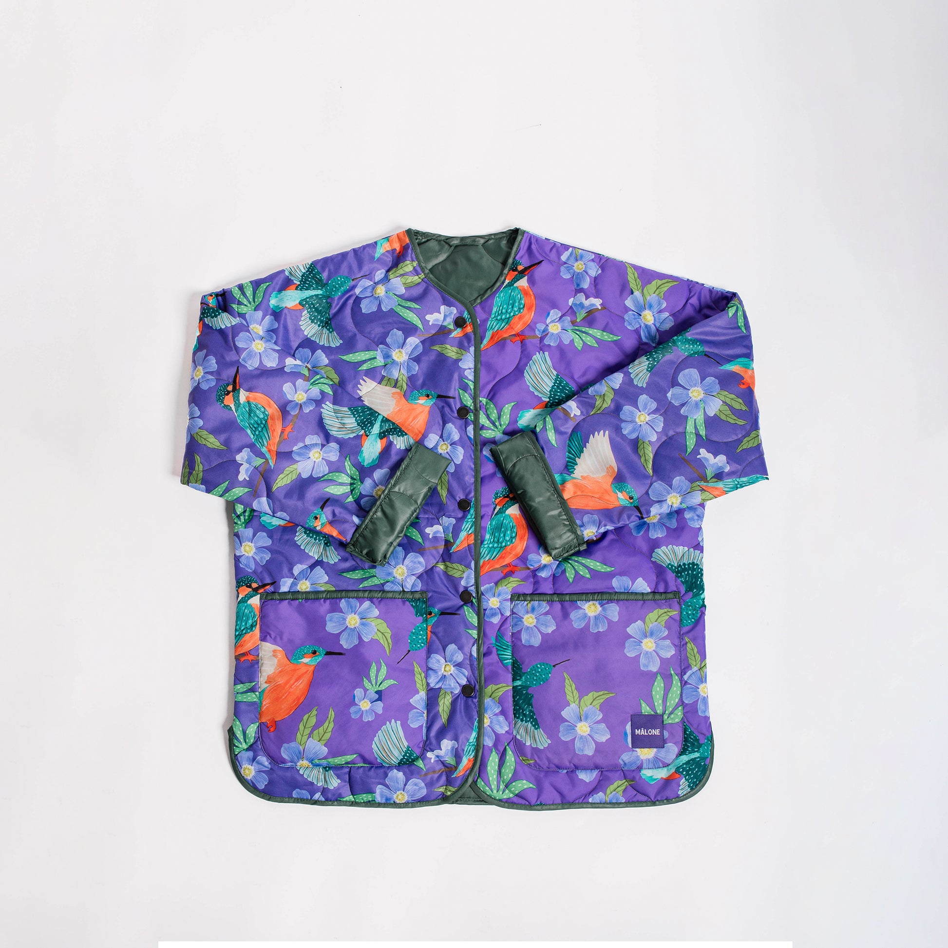 - Mâlone Puffer Jackets are REVERSIBLE, with a stylish print of a designer on one side and the other side a plain matching color.